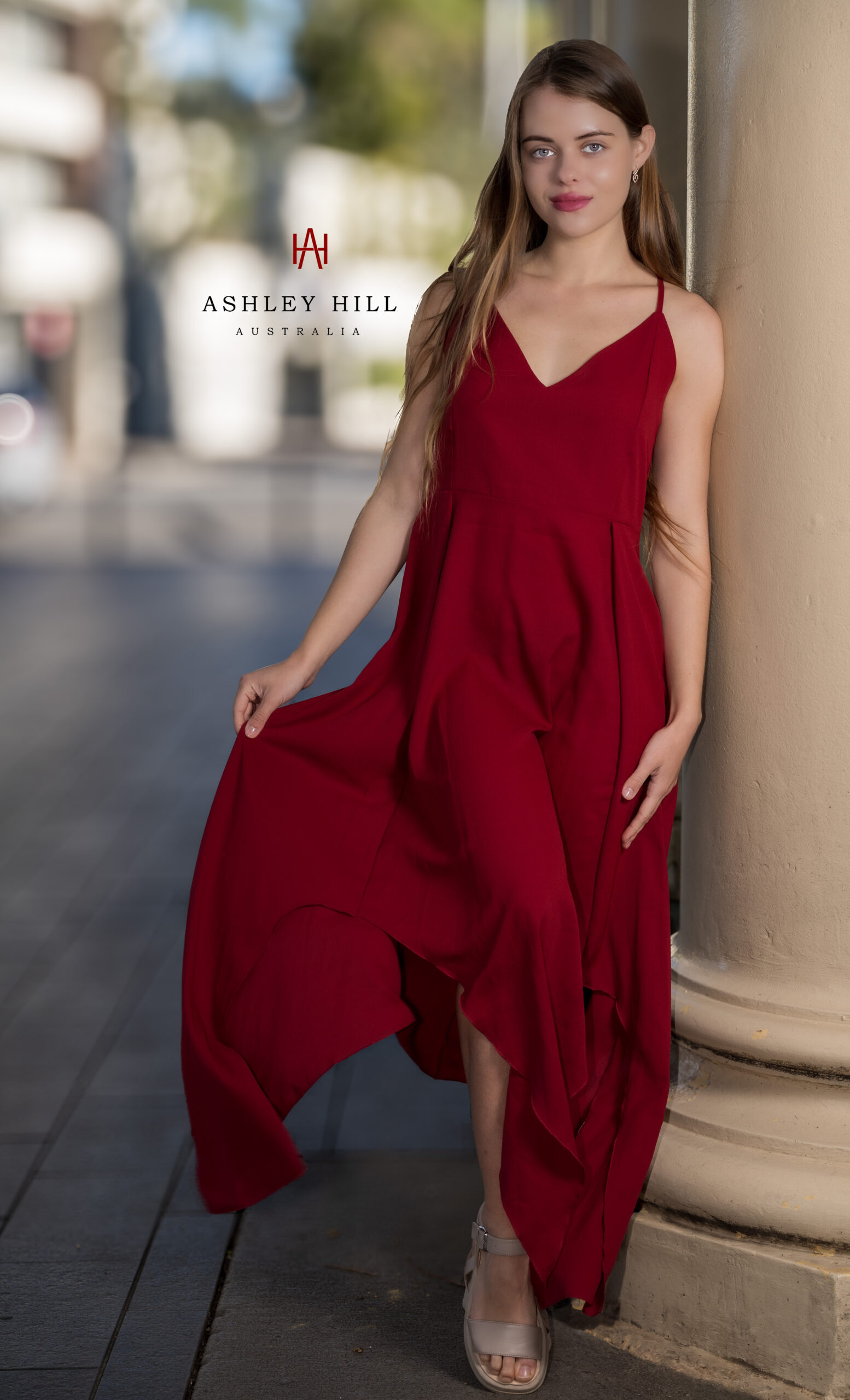 Deep V Neck Polyester Backless Spaghetti Strap Asymmetrical Dress