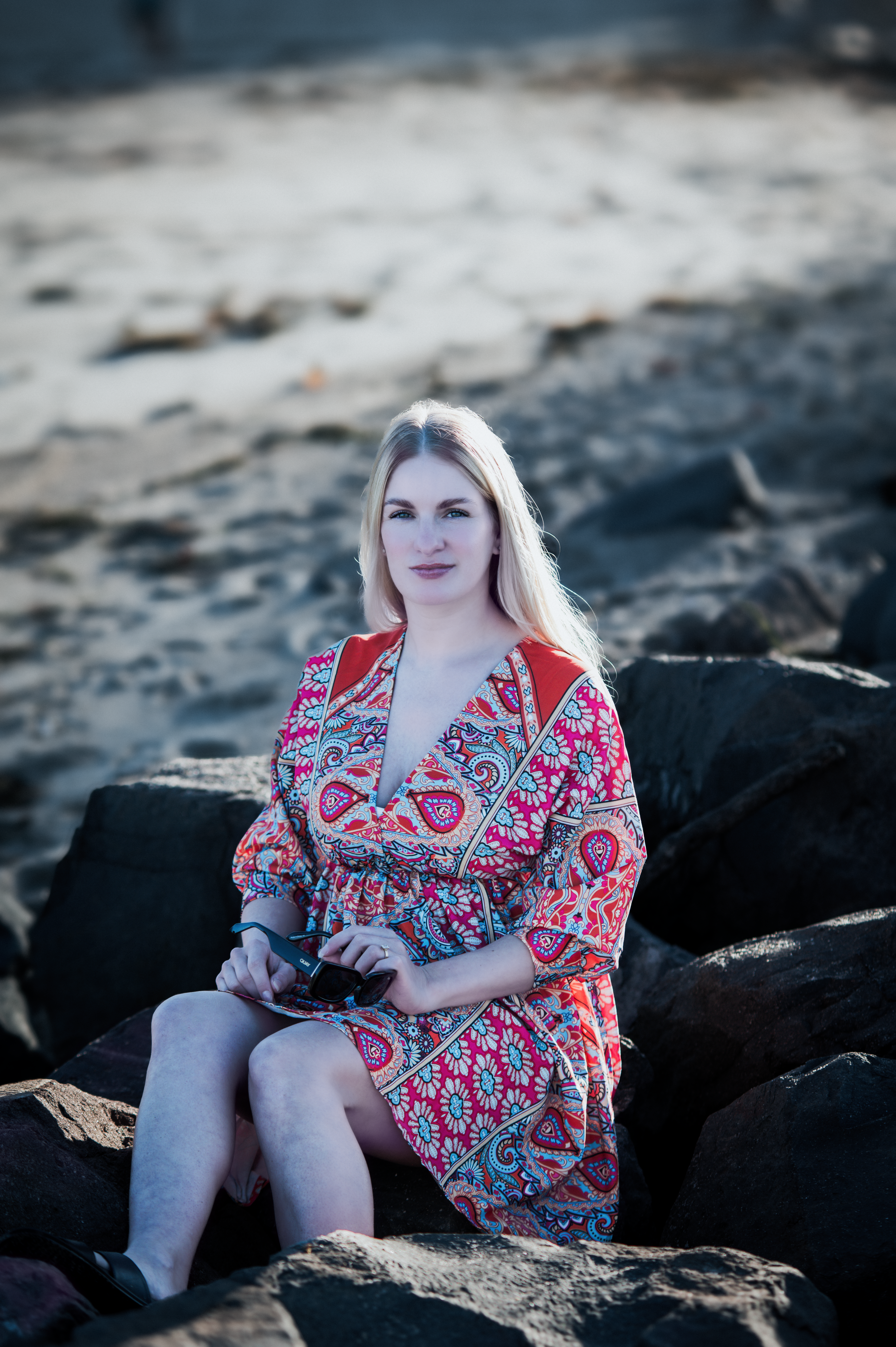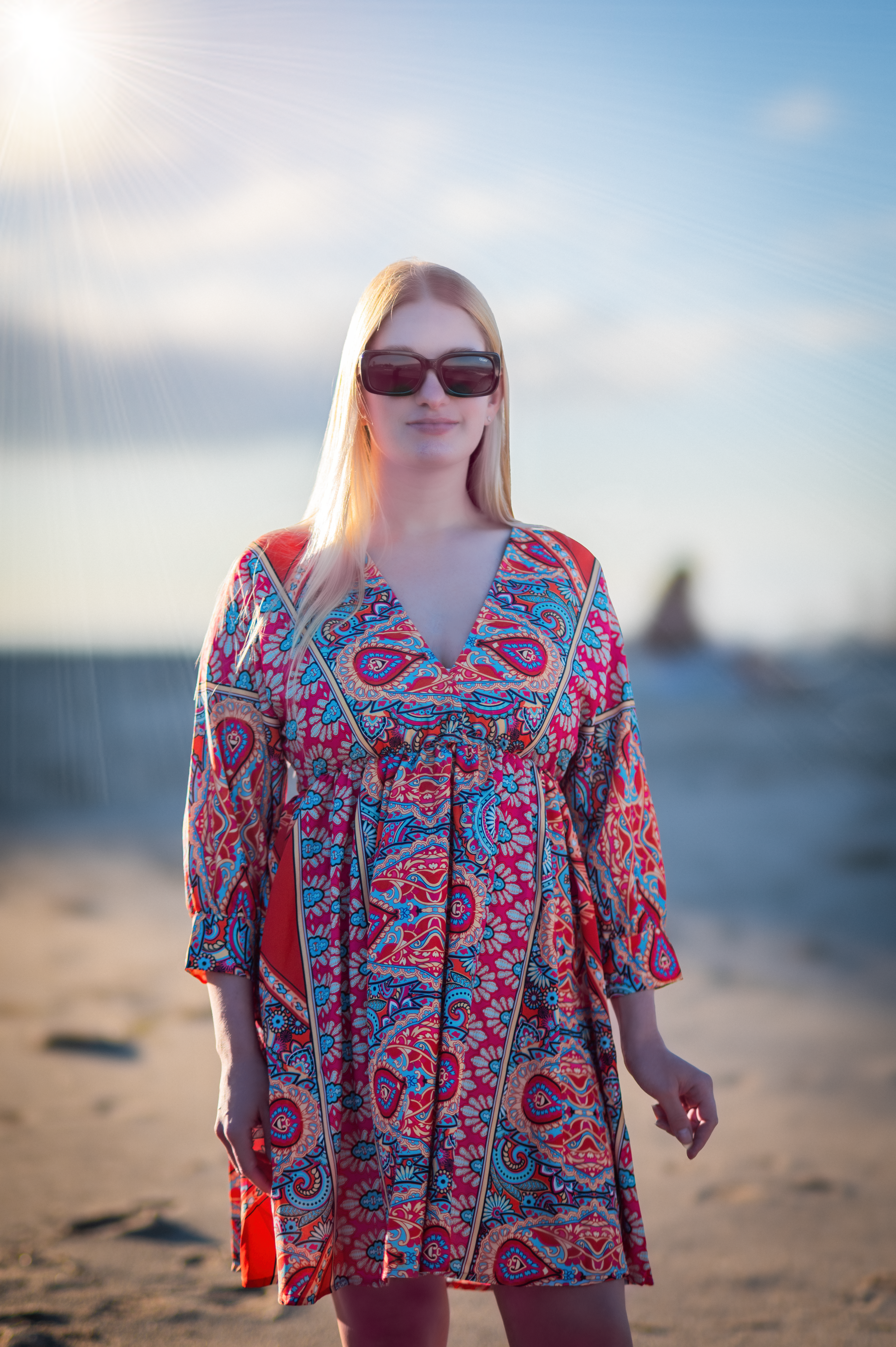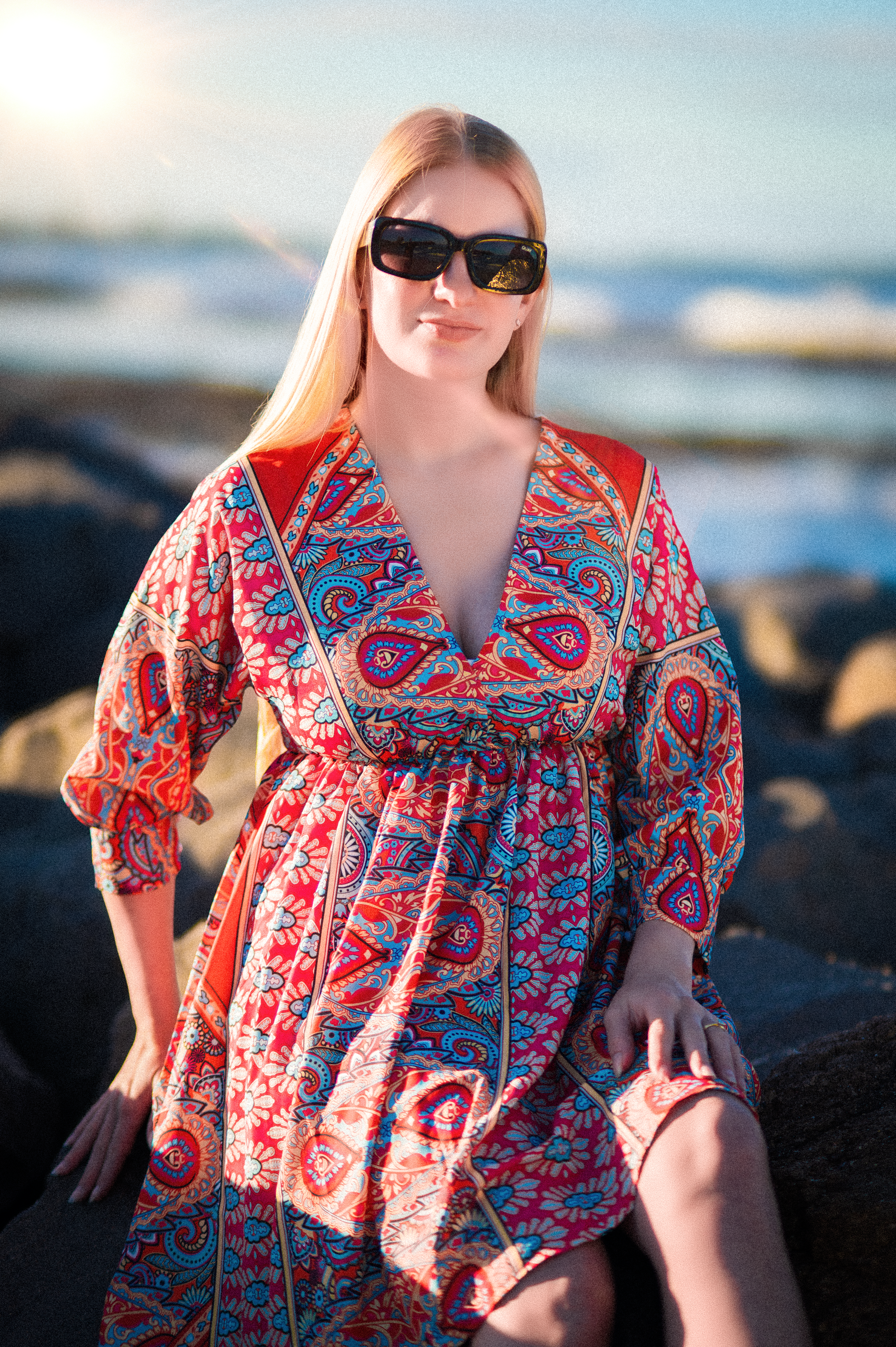 Backless Deep V Neck Polyester Waist Floral Skirt Long Sleeve